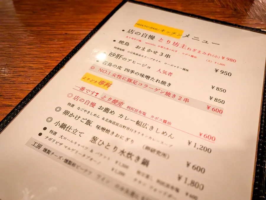 焼鳥亭という名にふさわしく、鶏料理がメインですね。