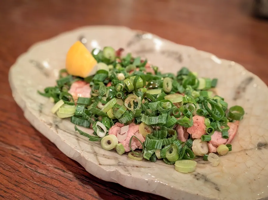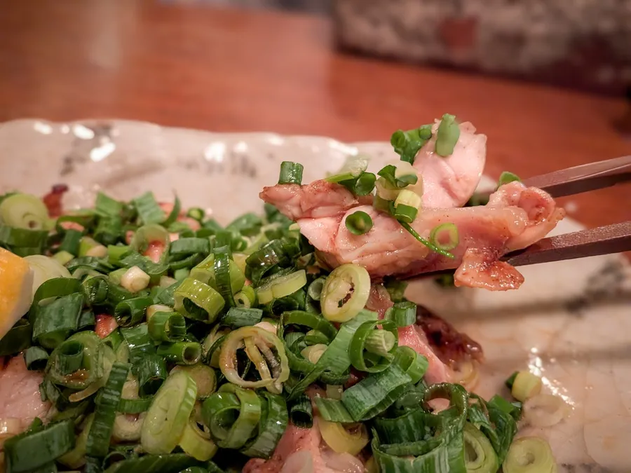 溢れ出す肉汁に合わせて、存在感を出しているのが九条ネギ。