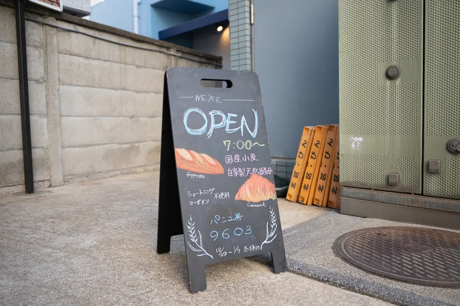 「朝早くから仕事へ行く人にも美味しいパンを」というモットーで、 なんと朝7時から営業されている96〇3さん。 早起きして平日の午前8時ごろ伺いました。おはようございます!