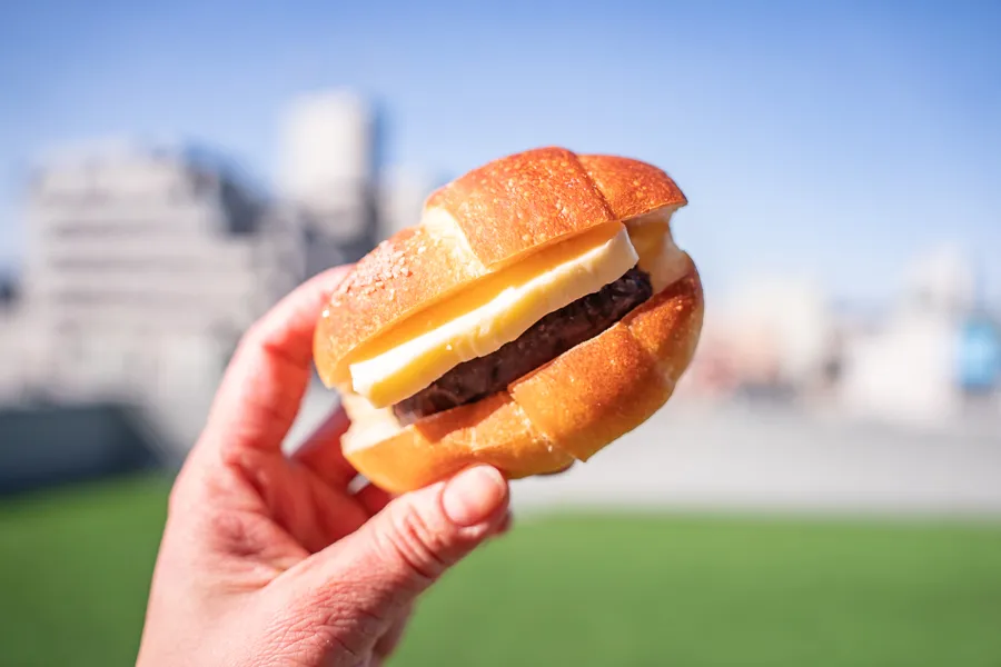 続いてはチーズチーズ!チーズ好きとしては既に最高のビジュアルですが、 思い切りかぶりついたらなんとびっくり!