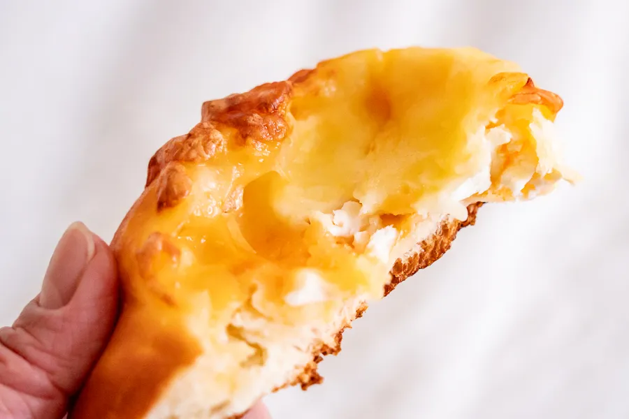 中からたっぷりのクリームチーズが!こういうパンってチェダーチーズだけの イメージがありますが、これは贅沢なチーズづくしですね。