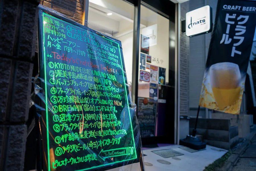 外看板には全国各地のビールがびっしりと!知らない銘柄ばかりでワクワクが止まりません。