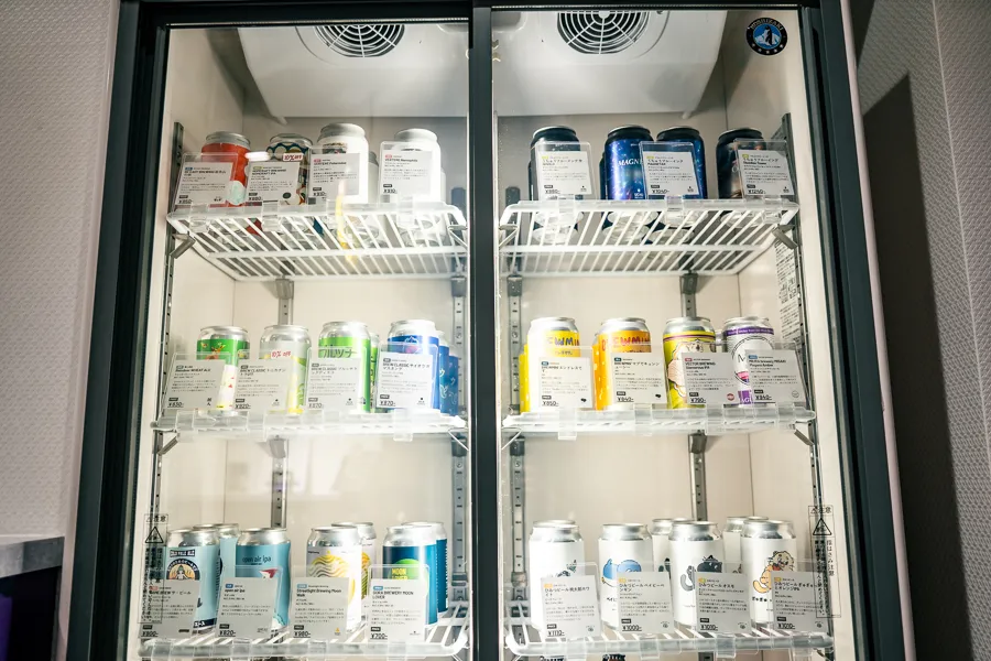 タップから飲むビール以外に、缶ビールも充実しています。 こちらは店内で飲むこともできて、テイクアウトも可能です。