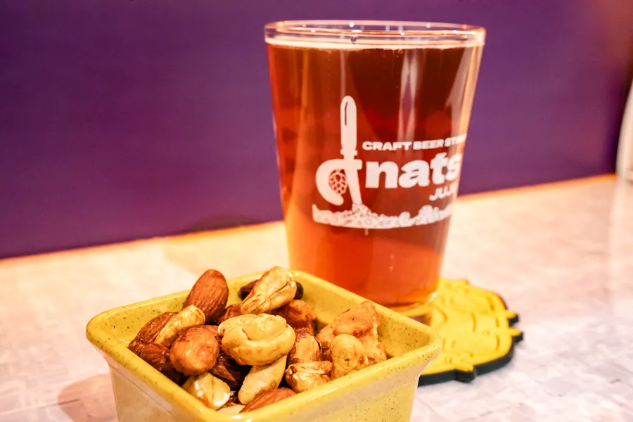 おつまみには「木樽仕込み醤油ミックスナッツ」。 居合わせたお客さんから「絶対これ頼んだ方がいい!」とお墨付きをいただいた一品です。