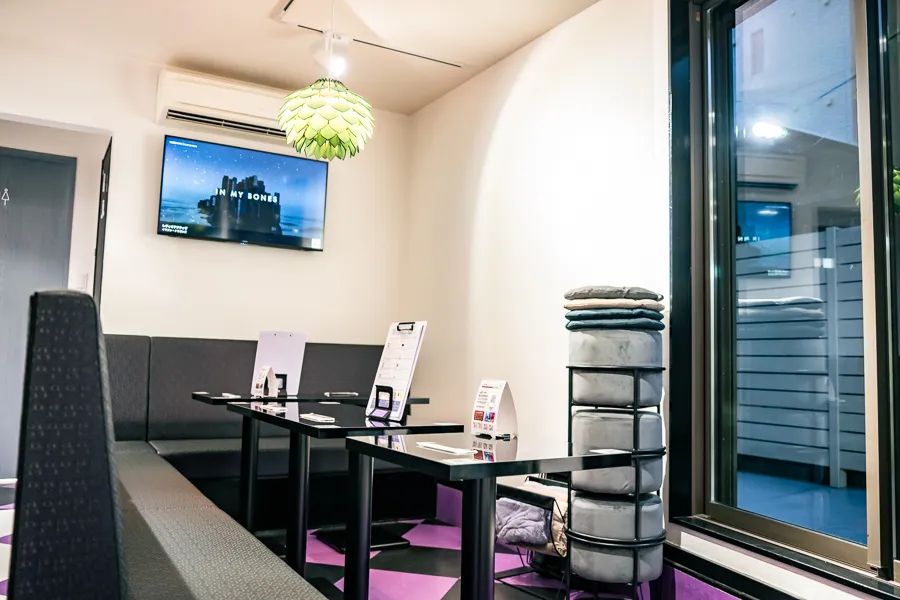 おつまみはどんな感じなんでしょう?お店の内装には珍しい鮮やかな紫が目を引きますが、 これは一体どんな経緯が…?気になることだらけなので、早速お邪魔します!