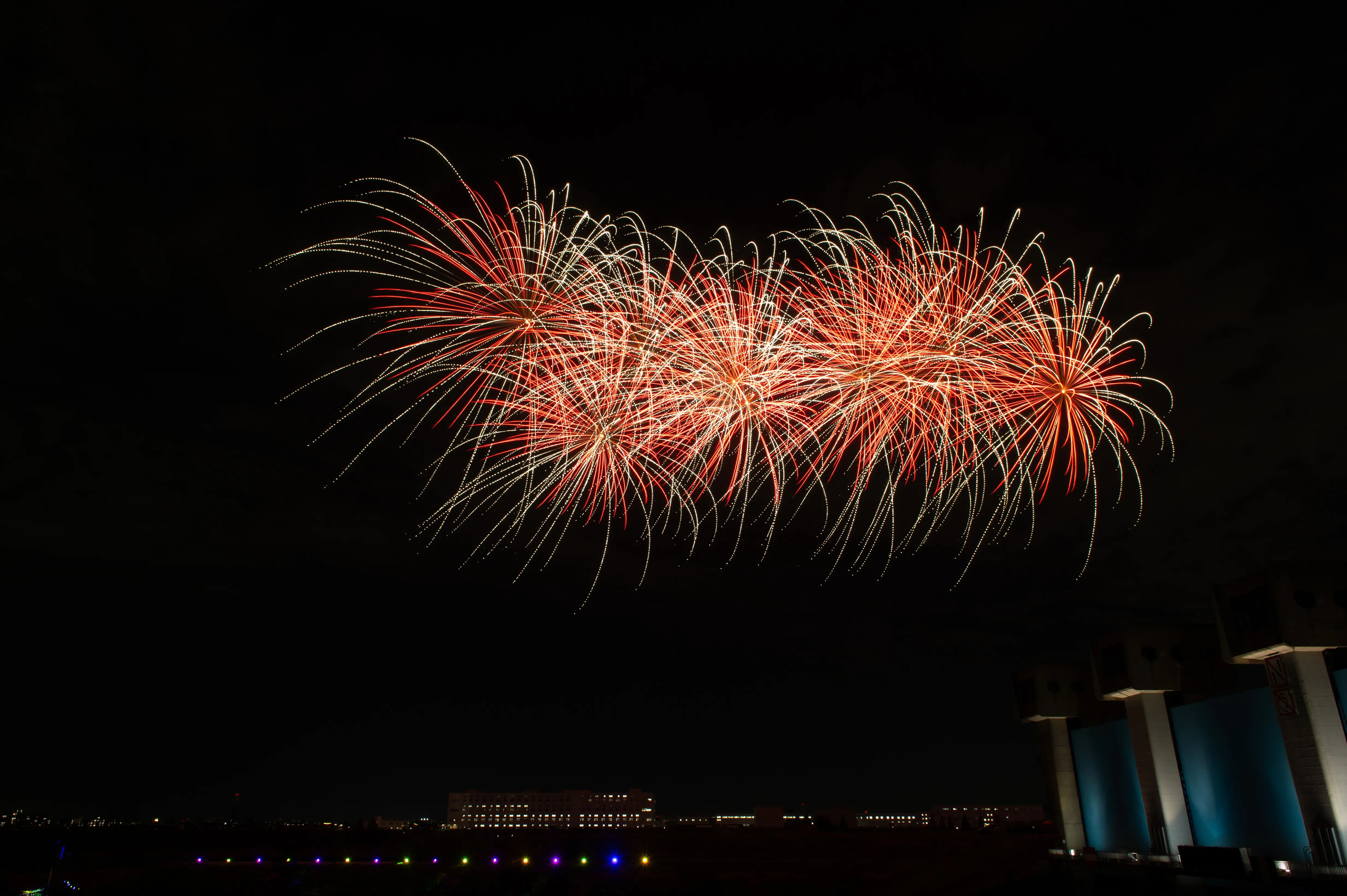 音楽に合わせて、色鮮やかな花火が打ち上がり、北区の夜空に大輪の花を咲かせます。