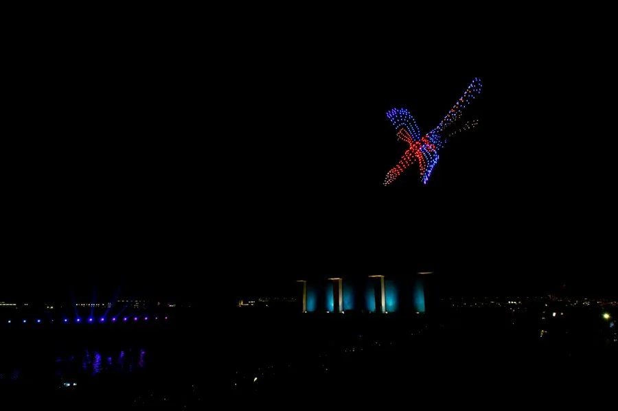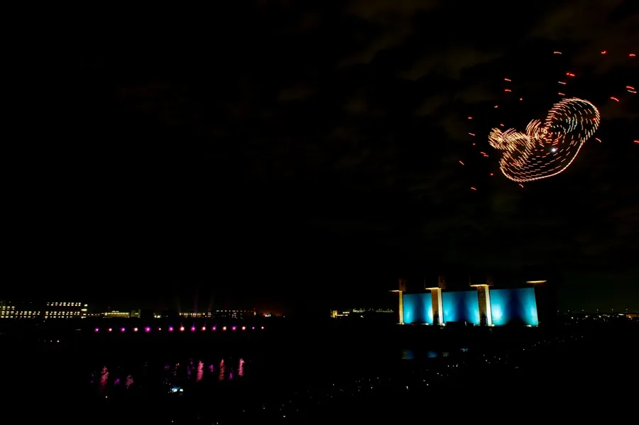 飛んでいるドローンは全部で500機!一糸乱れない動きで、夜空にアートを描きます。