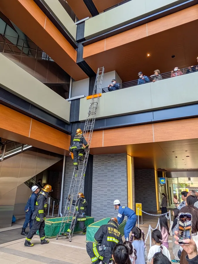 統率の取れた動きで2階へ登っていく隊員さん。子供たちの歓声。子供たちは絶対に憧れますね♪