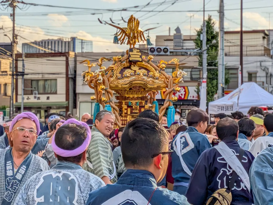 お祭りになると、各町内会のお神輿が出て、十条も盛り上がります。