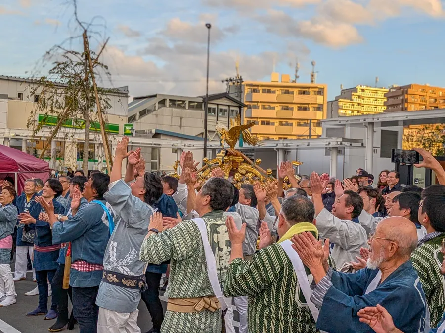 無事にお神輿を担ぎ切り、担ぎ手さんたちもやり切ったというホッとした気持ちが伝わってきます。